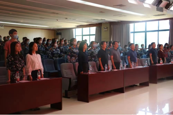 大会在庄严雄壮的国歌声中拉开帷幕,全体师生起立奏唱国歌。