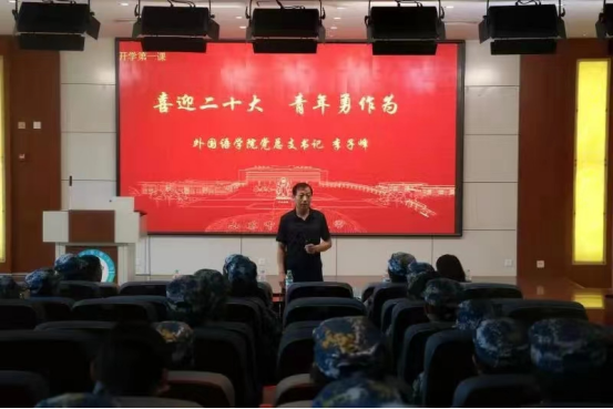 讲话。首先强调新生们进入大学校园成为大学生,必须坚持正确政治立场,坚定中国特色社会主义道路自信、理论自信、制度自信、文化自信,做到坚决维护习近平总书记党中央的核心、全党的核心地位,坚决维护党中央权威和集中统一领导,希望同学们能发扬新时代新青年昂扬向上的精神,担当新时代的新任务,创造新成绩;其次,李子峰书记从自身经历出发,阐明了管理好自己时间的重要性、管理好自己的负面情绪的必要性;同时从自信、自大两方面提醒同学们不要忘记谦虚待人,虚心接受他人的建议,学会和同学老师沟通交流。最后提醒同学们注意宿舍安全防火防电,珍惜生命。