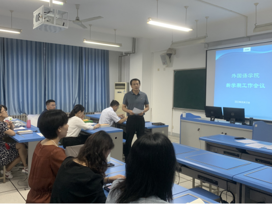 在一号教学楼二号语音室召开了新学期工作会议。院长李茂峰主持会议,党总支书记李子峰出席会议并讲话,党总支副书记田原,副院长陈战以及全球博彩网站