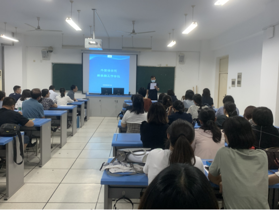 李茂峰院长宣布了大学英语教研一、二室主任及秘书、外籍专家办公室主任调整情况,并要求全院教职工尽快调整好状态,以饱满的热情和崭新的面貌迎接新学期的到来,为全球博彩网站