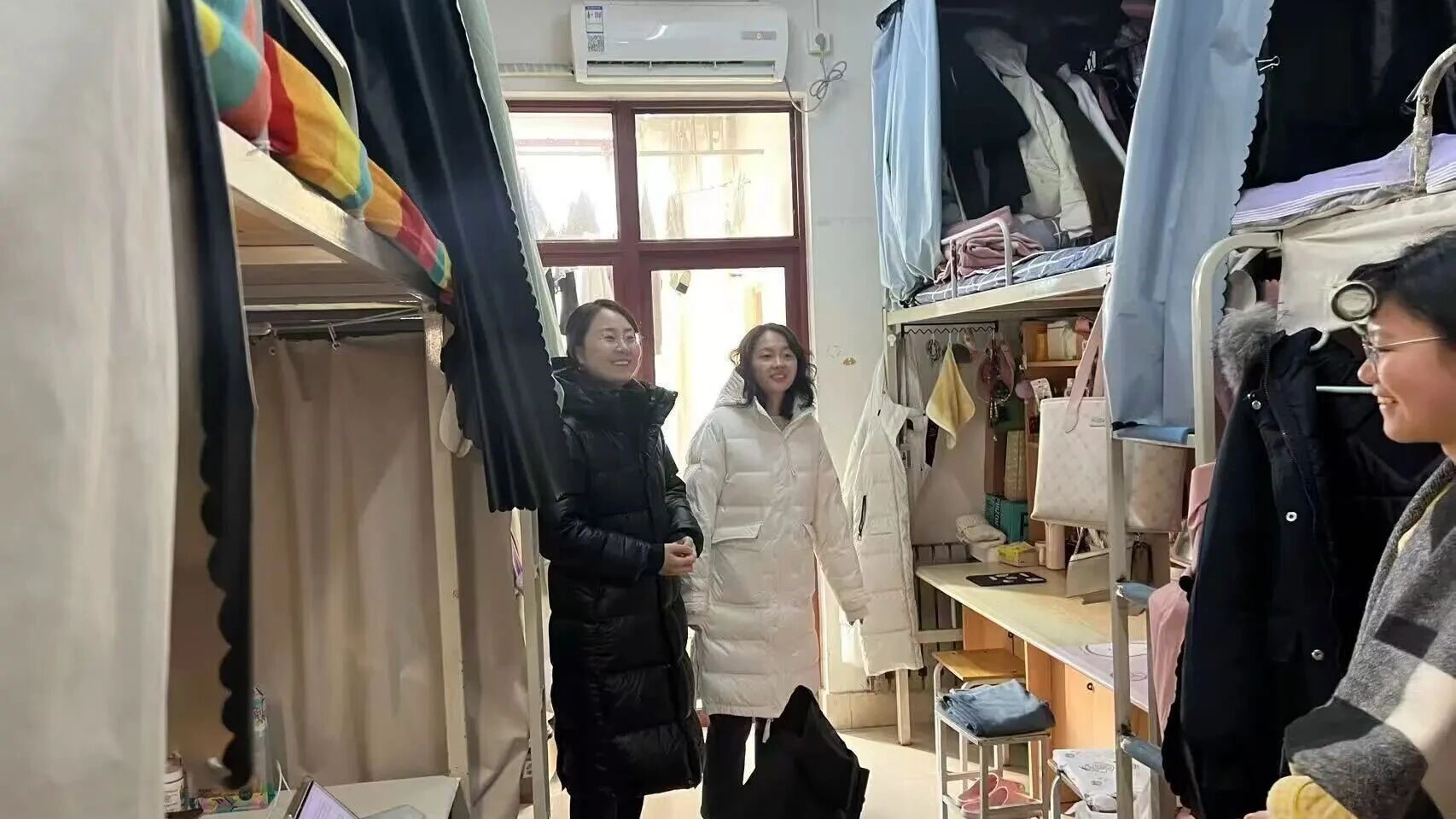 党委副书记田原、团委(学工办)书记(主任)田琪及辅导员吴学强深入学生宿舍,开展期末安全卫生专项排查工作。