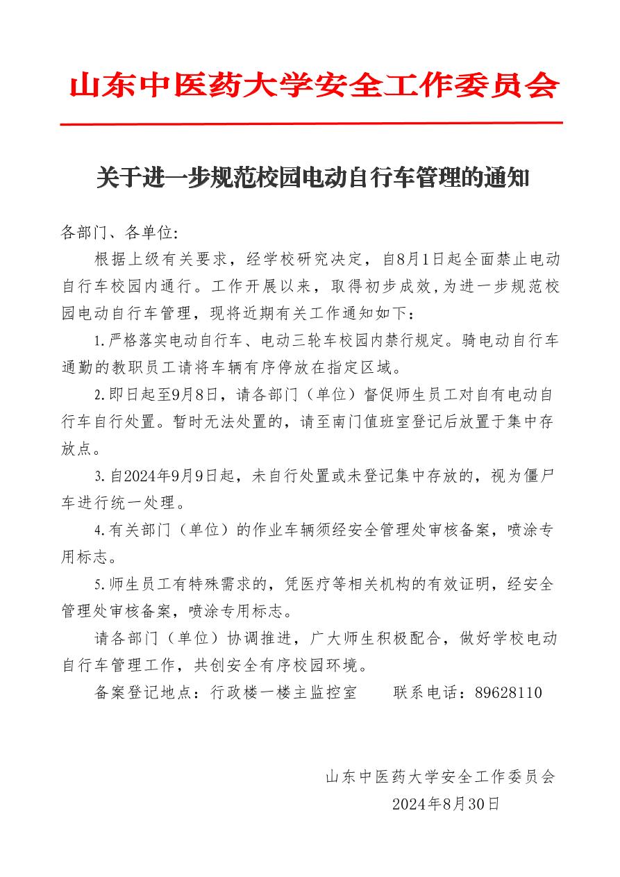 关于进一步规范校园电动自行车管理的通知