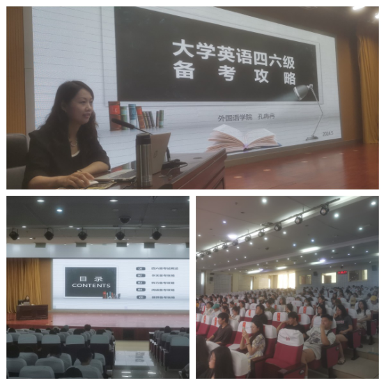 大学英语教研二室主任孔冉冉副教授在图书馆二楼报告厅作题为《大学英语四六级备考攻略》的辅导讲座。