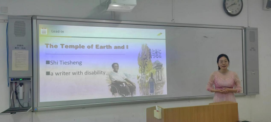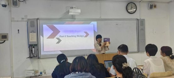 学校青年教师教学比赛二等奖获得者、大学英语教研一室王莹老师从史铁生的语录引入课文主题,以任务型阅读的方式讲授“A Fan's Note”一课。她细致分析了主人公的内心思想、动作行为和个人品质,并重点讲述重要动词的用法、说明文的特征和隐喻等语言知识。马东梅和邱冬两位老师在点评时一致认为,王莹老师精心挖掘文本内容,授课自然流畅,学习目标设置与教学组织紧扣单元主题,在讲授语言知识的同时,也注重提高学生的阅读和分析能力。