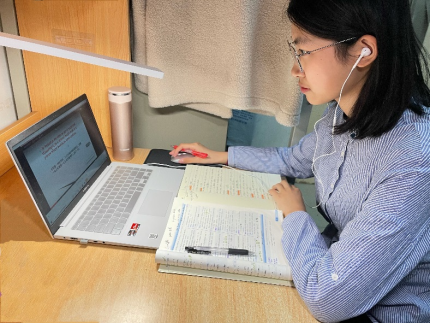 针灸推拿(英语)2021级1班的李天骄同学认为,虽然线上学习的效果与线下课相比存在一定差距,但是经过几天的学习同学们都已经逐渐适应。在网络教室,老师依旧活力四射地进行授课,同学们依旧认真仔细地学习。身为学习委员,她积极与老师同学们互动,做好表率工作。在此过程中,她发现与老师互动能最大化的跟紧老师的步伐,尽可能吸收每一个知识点。英语学科的学习需要的是一点一滴的积累,每周大约四个小时的英语课远远不够。因此,网课期间,她仍然坚持每天早起听听力、晨读,课余时间有序进行预习复习、单词背诵和写作练习。相信只要努力去做,就会有收获!
