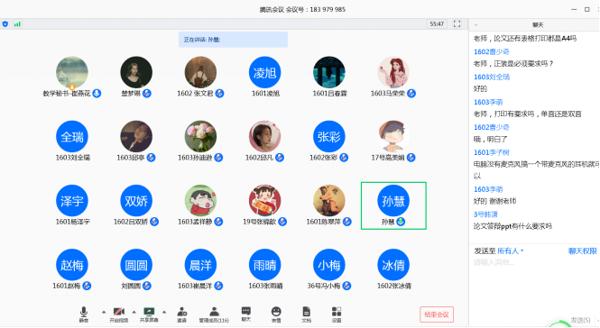 通过腾讯会议平台召开线上答辩动员大会,会议由教学副院长孙慧主持,团总支书记,教学秘书,2020届全体毕业生共计116人参会。