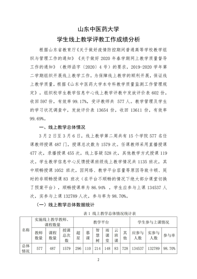 教学质量信息简报第二期(2019-2020学年第二学期第二周线上教学评教工作成绩分析)