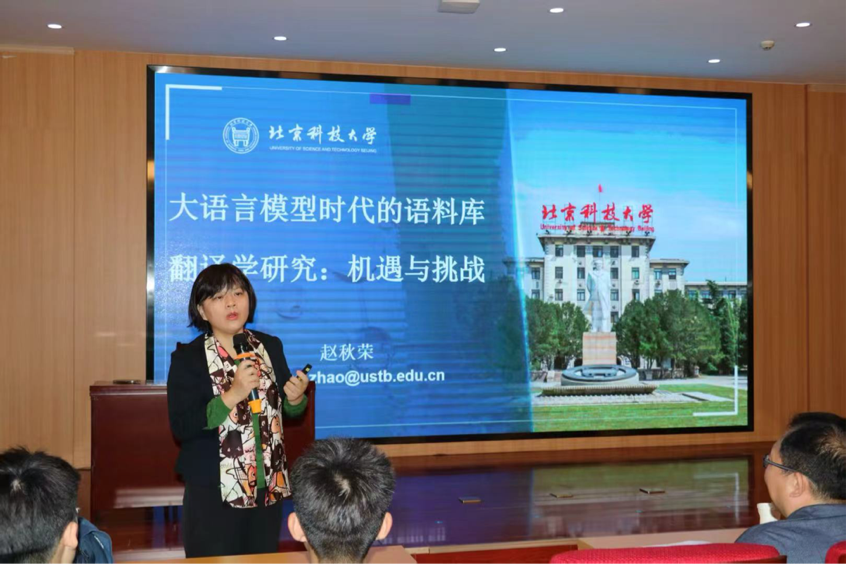 在长清校区3号教学楼第二厅举办第五期“求索讲堂”学术活动。北京科技大学翻译学科带头人赵秋荣教授应邀作题为《大语言模型时代的语料库翻译学研究:机遇与挑战》的报告,并指导全球博彩网站