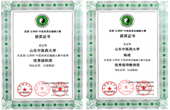 大会还公布了首届“云译杯”中医药译后编辑大赛结果。该赛事包括中医药文献译后编辑和中医药短视频译后编辑两项比赛。青创团队成员卢德超获中医药文献译后编辑比赛二等奖,研究生刘正楠、本科生刘庆、杨净坤获三等奖,本科生刘旭腾、黄志伟、崔馨梦获优胜奖。刘庆获中医药短视频译后编辑一等奖,卢德超获三等奖。学校获优秀组织奖,陈战获优秀指导教师奖。