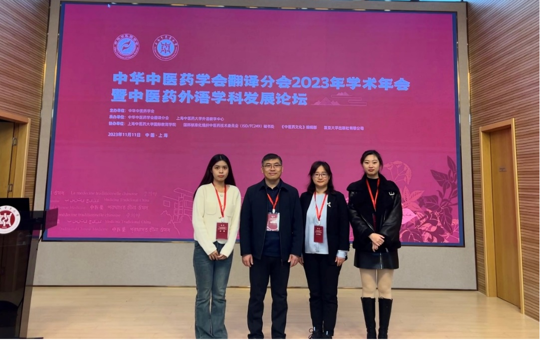 2023年11月11日,中华中医药学会翻译分会2023年学术年会暨中医药外语学科发展论坛在上海中医药大学举行。副院长陈战教授、王芳芳副教授及学生代表参加会议。