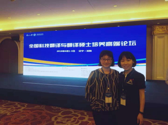 2018年6月1日-6月3日,科研创新团队成员王芳芳、张洁赴辽宁沈阳参加“全国科技翻译与翻译硕士培养高端论坛”。