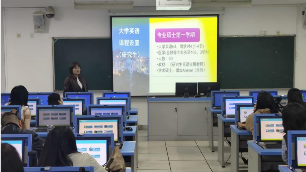 徐丽老师分享了她在山东大学进修的经历,重点介绍了该校大学英语课程设置,现场演示了通用学术英语授课模式,针对课堂教学设计、学生互动等实际问题,与在场教师进行了深入交流。此外,她还结合山东大学学生竞赛与教师科研成果,分享了自己在中医药拔尖人才选拔及中医药海外传播方面的研究心得。
