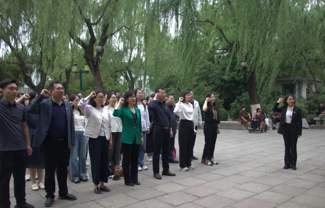 中共山东早期历史纪念馆前身是中共山东省党史陈列馆,2021年5月更名为中共山东早期历史纪念馆,展示1921年至1937年中共山东早期革命历史的峥嵘岁月,是山东省和济南市爱国主义教育基地、党史教育基地、反腐倡廉教育基地。活动中,全体党员师生在工作人员的解说下,以时间为序,参观学习山东党组织创建、发展、壮大和斗争的光辉历程,瞻仰王尽美、邓恩铭等革命先驱的英雄事迹。展区内,一幅幅珍贵的历史图片、一件件充满历史痕迹的文物,生动展现了革命先驱们坚守初心、矢志不渝的革命精神和廉洁奉公、严谨朴实的工作作风,深深感染了全体师生党员。参观结束后,全体师生党员来到美铭广场,在王尽美、邓恩铭两位革命先驱的雕塑前,面对党旗,重温入党誓词,使思想和灵魂得到又一次净化和升华。