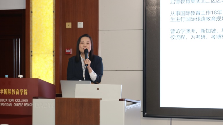 于远方阁报告厅举办“多彩外院,‘职’引未来——雅思托福经验交流会”。济南启德教育集团北二区区域总监、济南学校校长李冬和人力总监林建华主讲,全球博彩网站