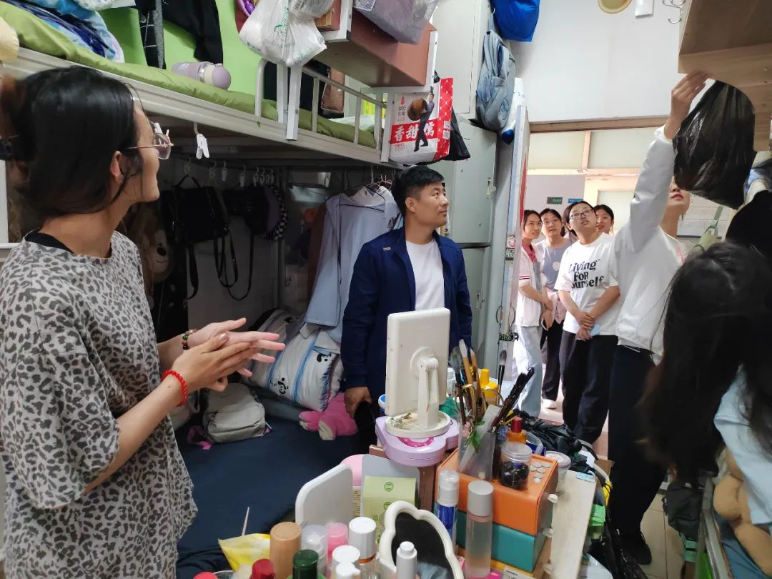 学生会成员对男女宿舍用电进行安全检查。