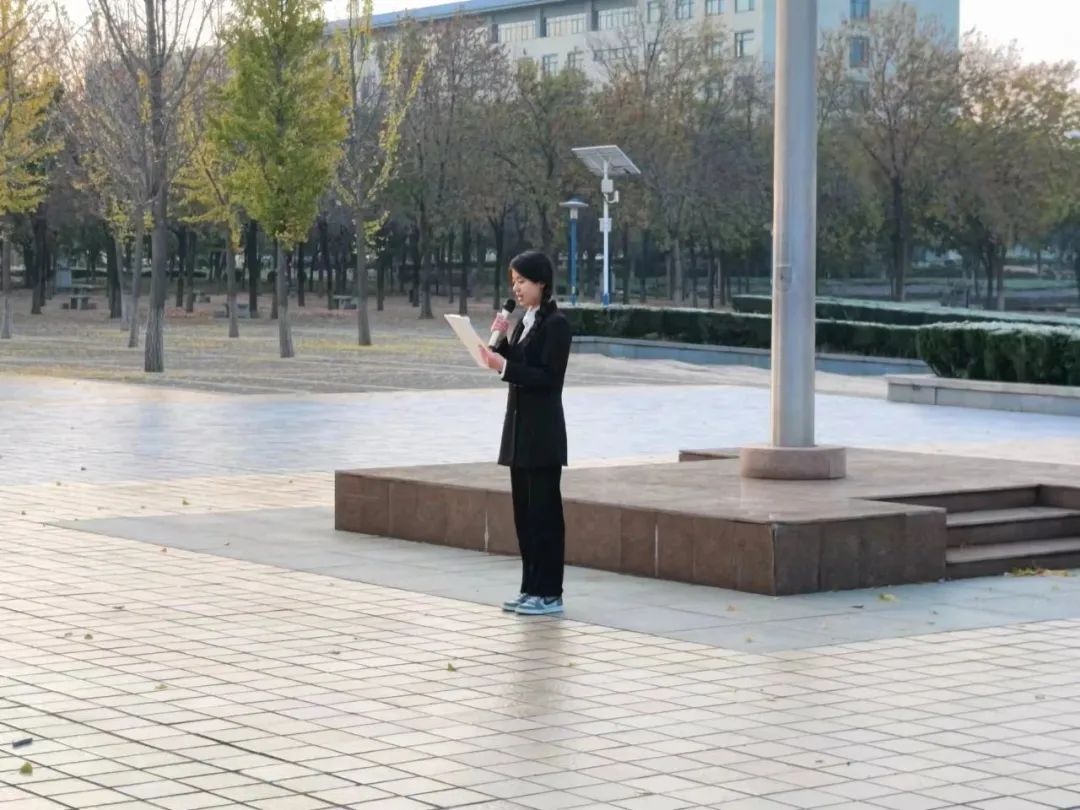 优秀学生代表韩怡然进行了题为《厚植爱国情,争做奋斗者》的演讲,号召同学们在奋进新征程的道路上,厚植爱国情怀,坚定牢不可破的信念,激扬奋斗精神,奔赴光荣与梦想的远征,将个人奋斗的小目标融入党和国家事业的大蓝图,在时代新征程唱响更加精彩的青春之歌。