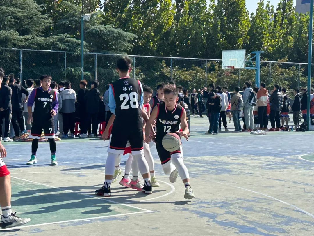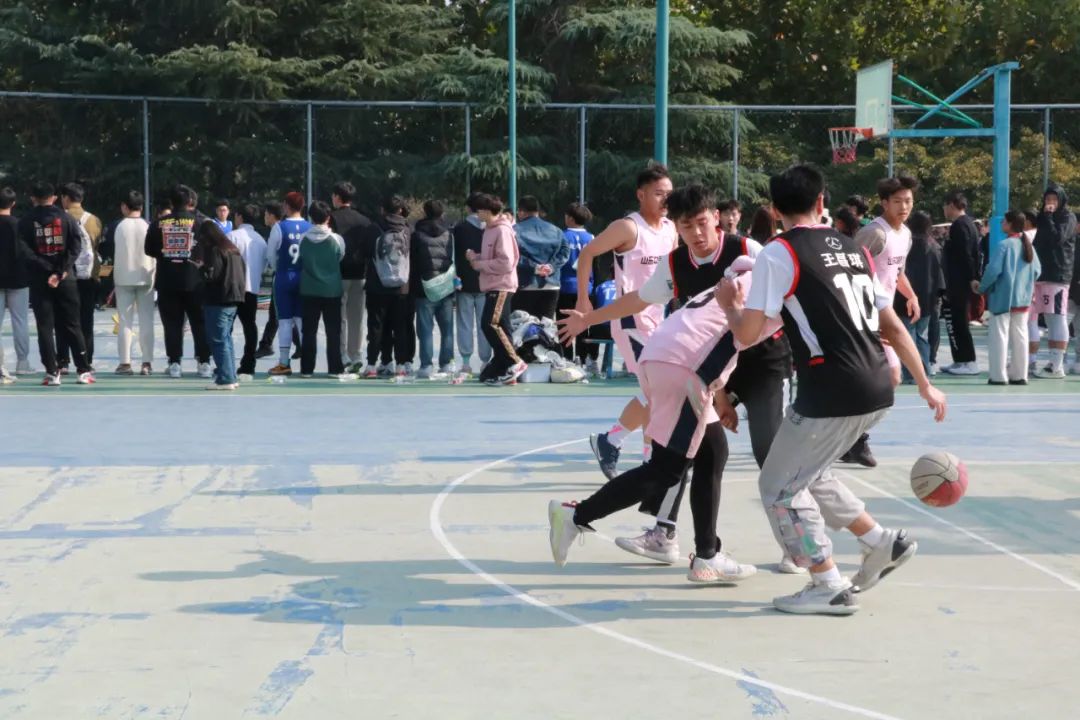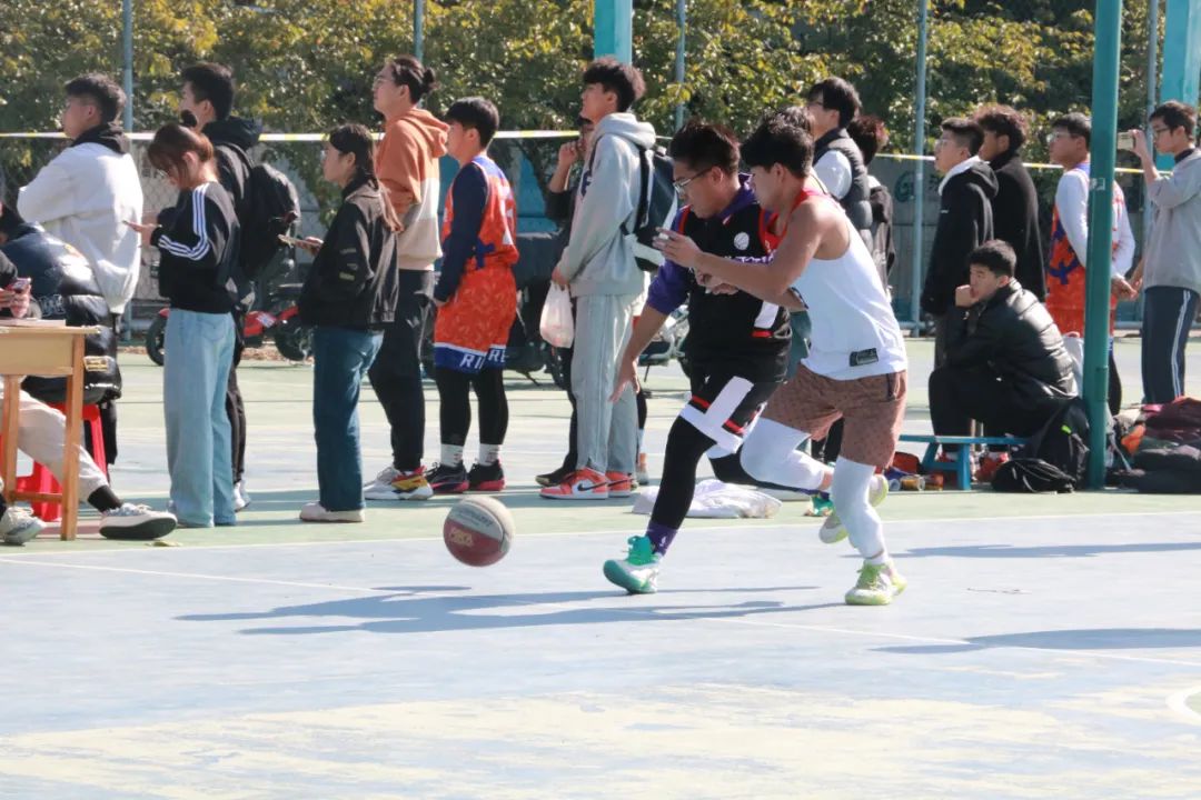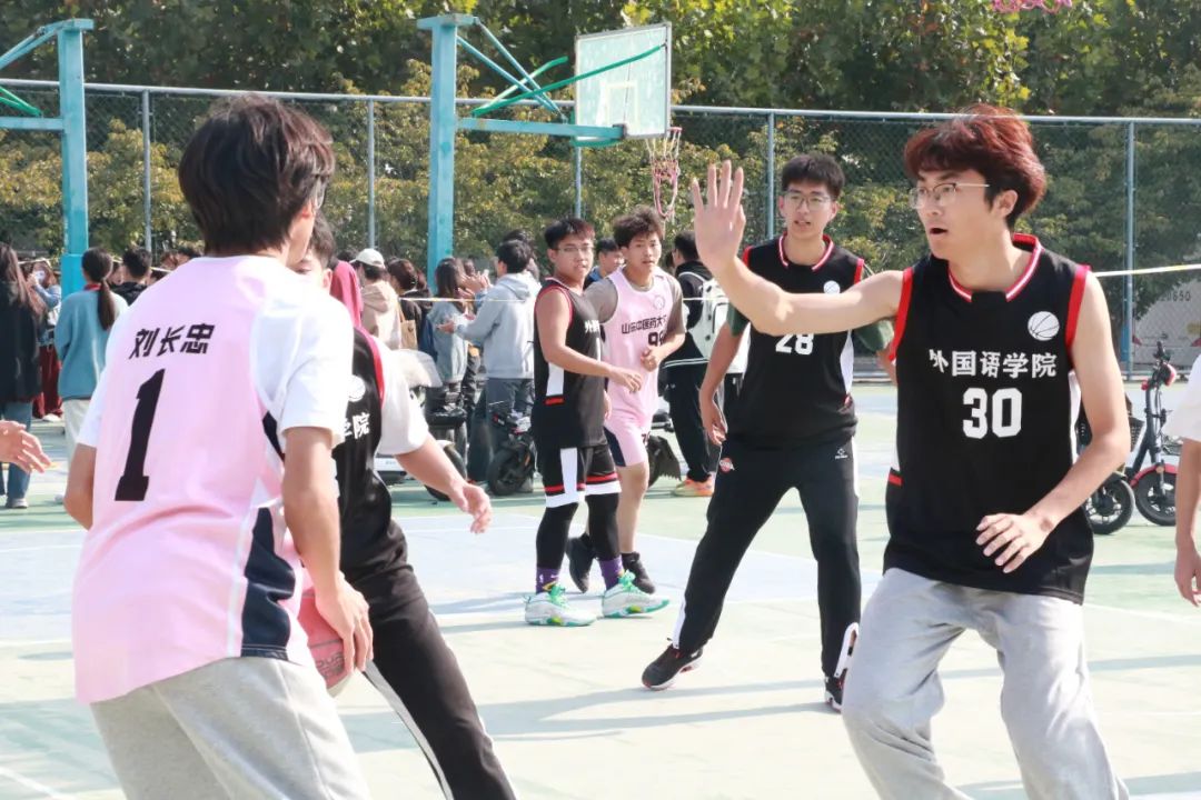夺球,侧身,一跃——“哇喔!进了!”观众席的欢呼此起彼伏,球场上运动员们正聚精会神地紧盯着对方的球员,肆意地在球场上奔跑,展现着青春的朝气与蓬勃的生气。