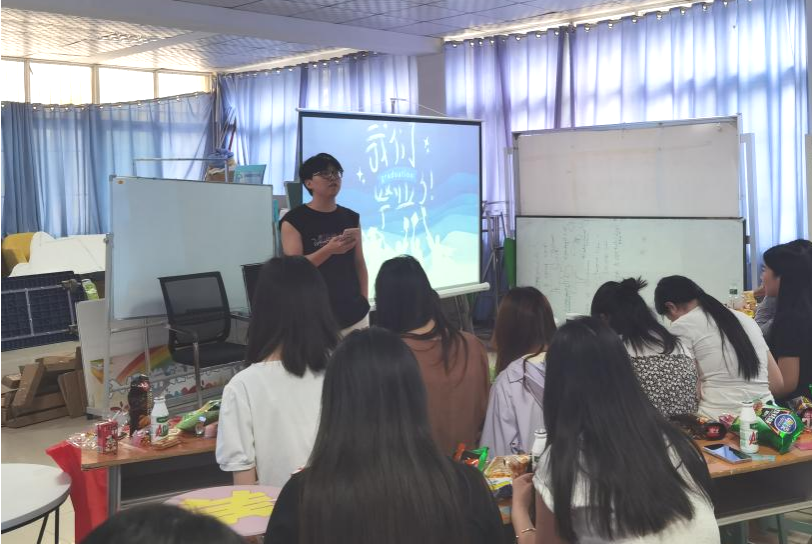 活动现场气氛热烈,大家进行即兴才艺表演、击鼓传花、“你画我猜”默契大挑战、“盲盒”抽礼物等活动,师生围坐一堂,共话四年情,展望未来景。