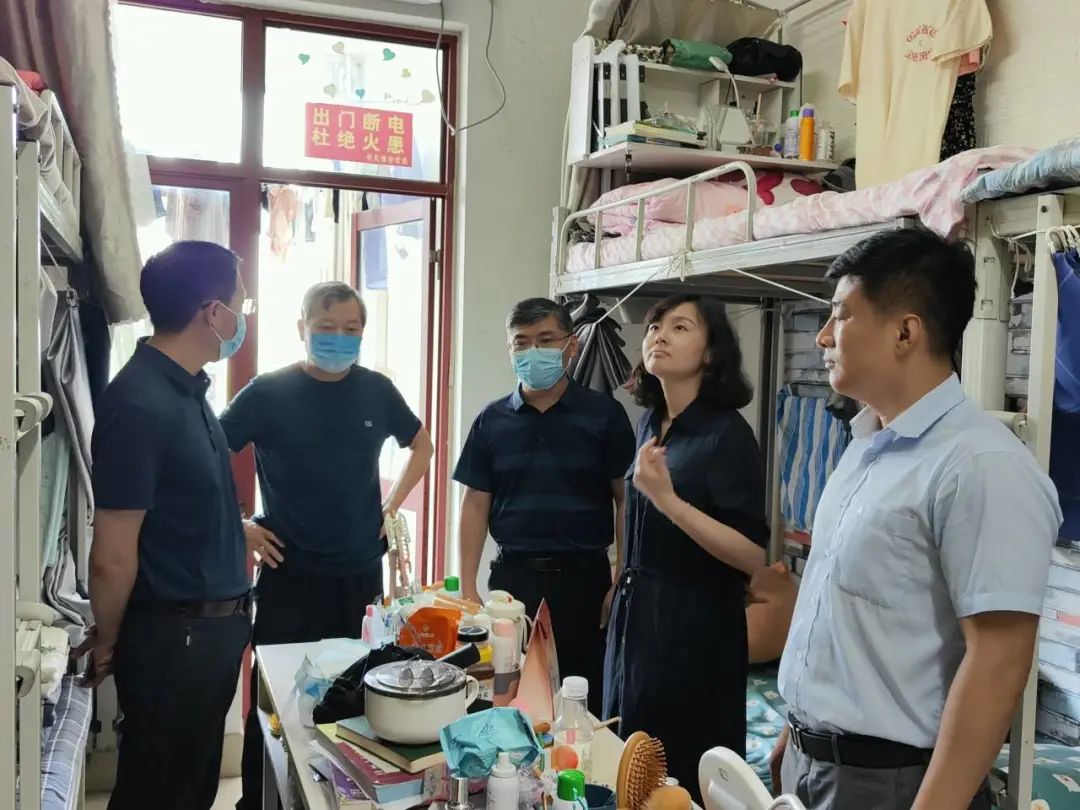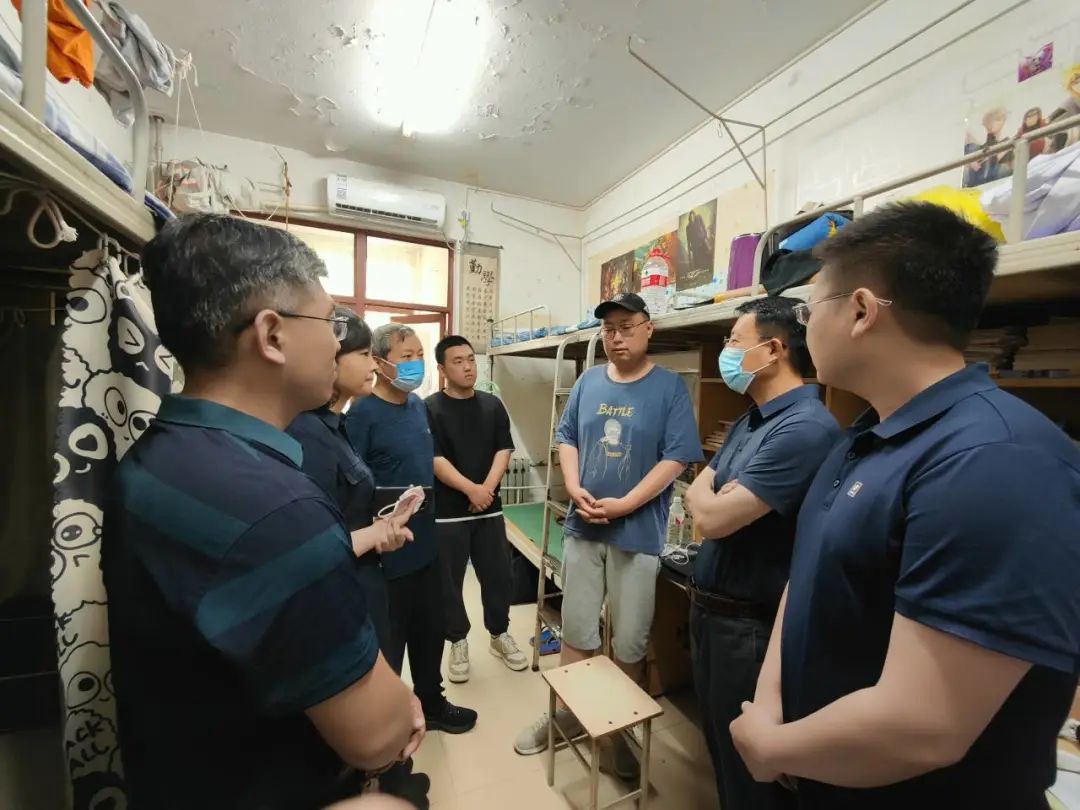 党总支书记李子峰,院长李茂峰,党总支副书记田原,副院长陈战,以及各年级辅导员对宿舍进行全面的内务卫生安全检查。