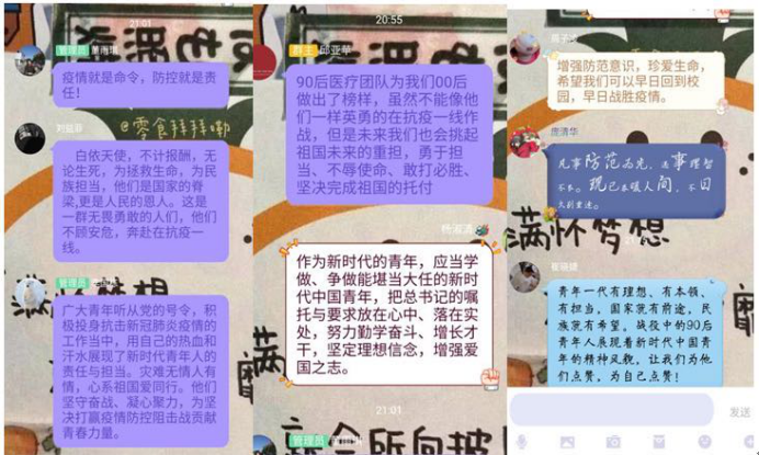 疫情无情,人间有情。支部开展“众志成城,从我做起”线上主题团日活动,组织团员学习《总书记给北京大学援鄂医疗队全体“90后”党员的回信》并展开热议,开展战“疫”主题创意海报征集活动与点滴感动收集活动,并组织支部团员观看“THANK YOU ,WORLD”英文演讲视频。