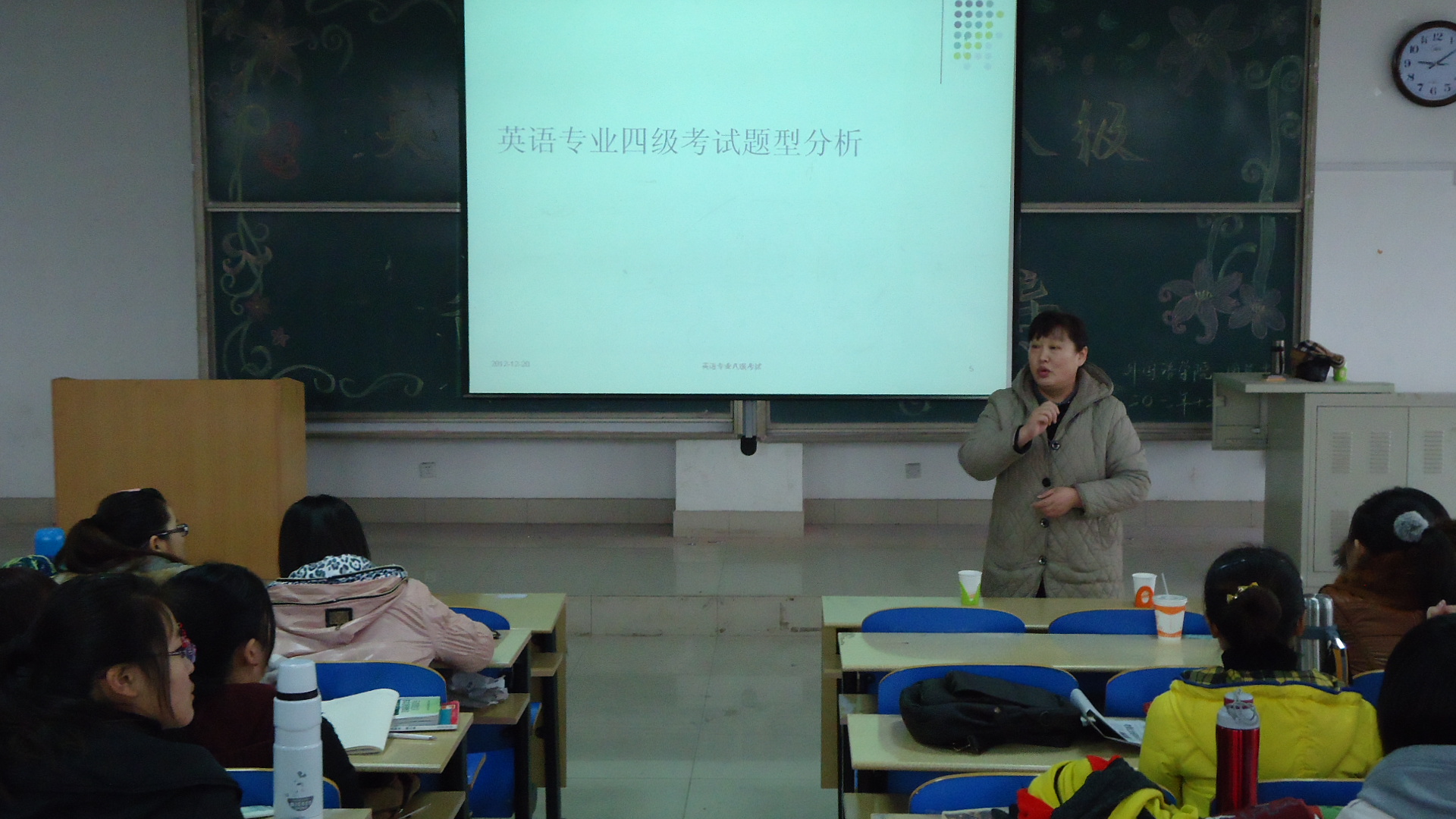 为加强英语专业建设,进一步树立良好的教风与学风,更好地保证2026全球十大博彩网站排行 教学质量和水平,使同学们备考专业四级、八级更有方向性、目的性,12月20日上午9:00,全球博彩网站 副院长孙慧在22JT举行了“英语专业四级、八级备考辅导”。