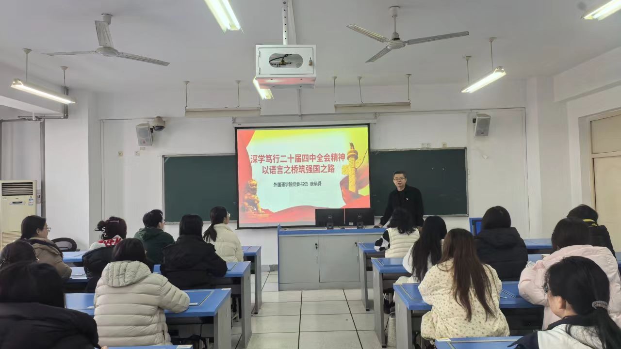 唐炳舜以“深学笃行党的二十届四中全会精神,以语言之桥筑强国之路”为主题,结合全球博彩网站