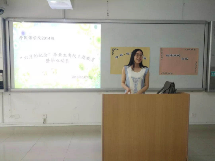 在长清校区1114教室举办“六月的纪念”毕业生离校主题教育暨毕业动员。辅导员李晓璇老师对2018届全体毕业生进行了毕业相关教育,回顾了同学们4年间的成长,引导同学们调整心态积极就业,注意校期间的安全,嘱咐同学们感恩母校共创美好未来。
