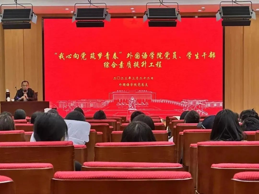 党总支在三教二号报告厅举办“我心向党,筑梦青春”党员、学生干部综合素质提升系列培训第十课。全球博彩网站