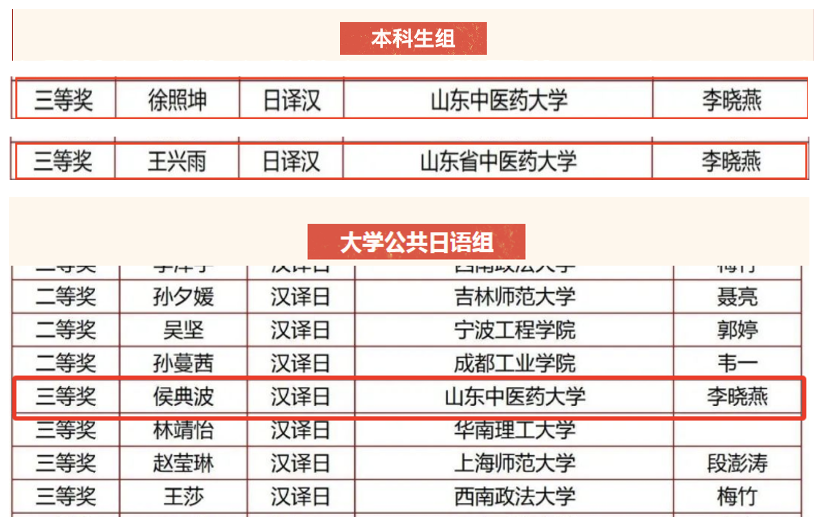 日语、俄语综合教研室教师李晓燕、翟艳美指导学生获佳绩,获本科组和大学公共日语组二等奖4项、三等奖5项,我校获优秀组织奖。