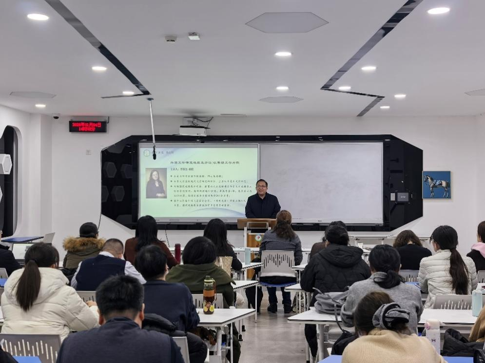 为提高项目申报质量和教师科研能力,1月4日下午,外国语学院在长清校区仲景楼308教室举办第七期“求索讲堂”暨2026年国家社科基金项目申报启动会。山东大学外国语学院教授、博士生导师,山东大学美国现代文学研究所所长李保杰应邀作题为《研究选题及方法:以英语文学为例》的专题讲座。学院党委副书记、院长苏娜娜出席会议,副院长李成华主持启动会。